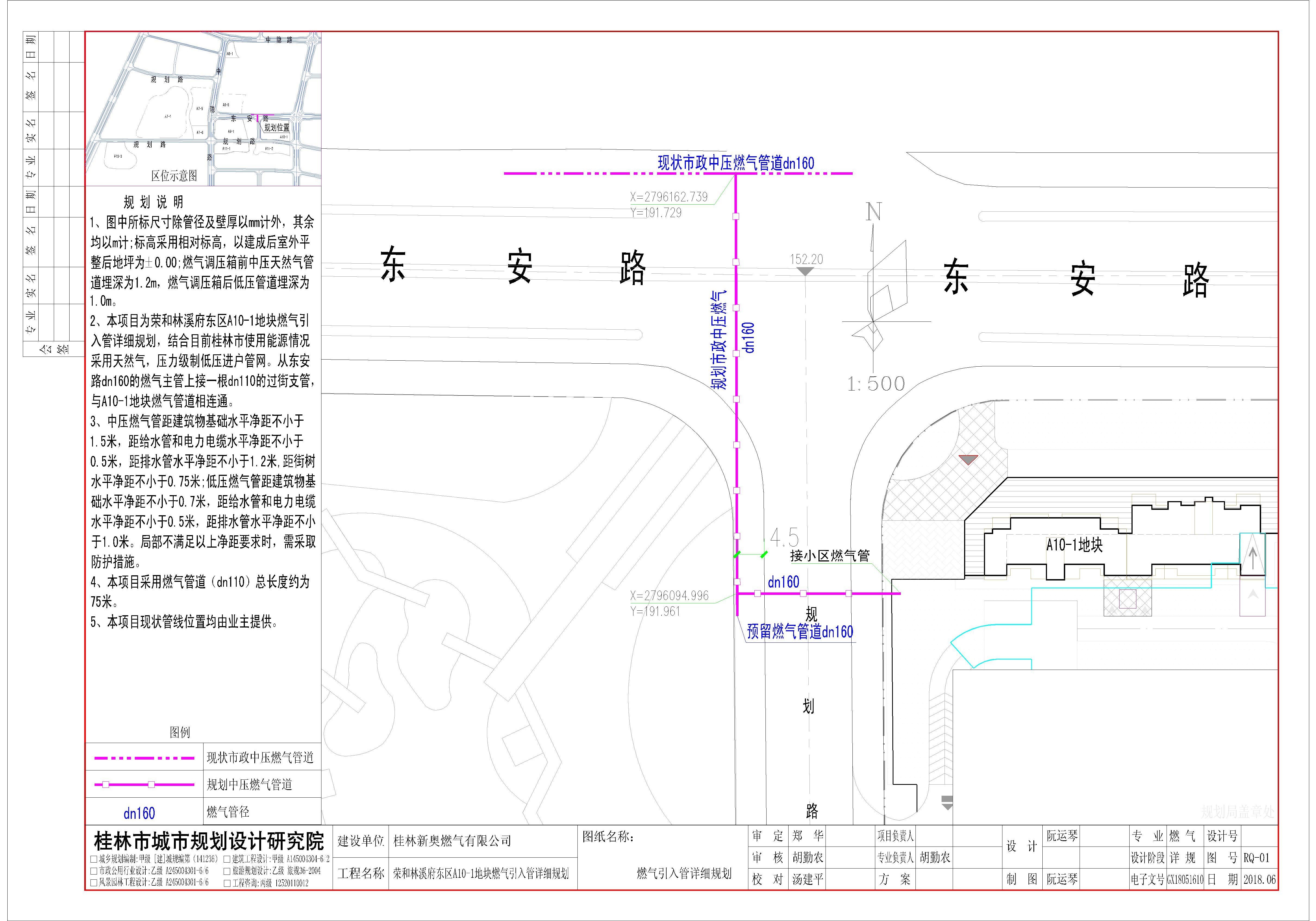 该项目在东安路北侧至荣和林溪府东区A10-1地块规划位置,新敷dn160规划燃气管道75米。具体线路走向、尺寸和位置详见附图。